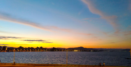 Dramatic sunset at Beiramar avenue in Florianopolis, Santa Catarina State, Brazil