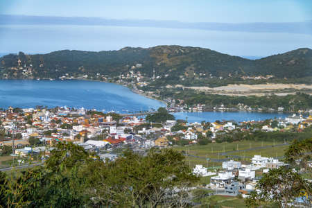 Aerial view Barra da Lagoa Beach in Florianopolis, Brazil. July, 2017.