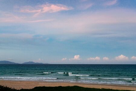 Distant islands and waves in the Pacific Ocean, in Imperial Beach, California.