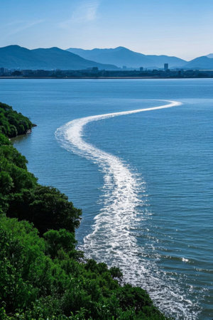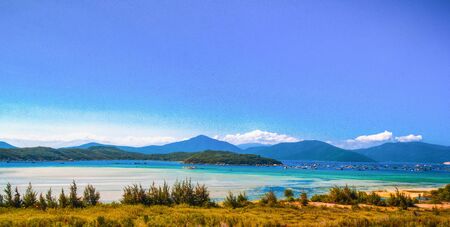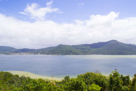 A beautiful view of the north bay under the cloudy blue sky in Florianopolis, Santa Catarina, Brazil