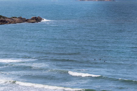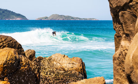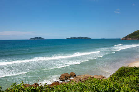 Holiday beach and blue ocean with surfing waves in Brazil. Morro das Pedras beach in Florianopolis