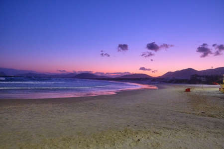 Coastline with dunes and Campeche town with sunset lights in Florianopolis