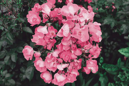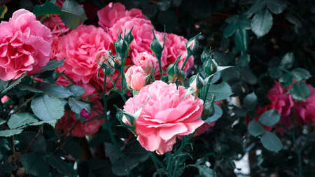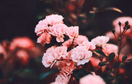 Beautiful pink rose flowers in the garden. Selective focus.