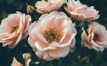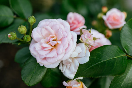 Beautiful light pink roses blooming in the garden during summer time