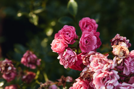 Beautiful pink roses blooming in the garden on a sunny day