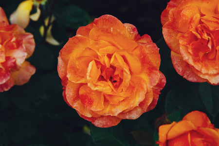 Orange fresh garden summer roses background