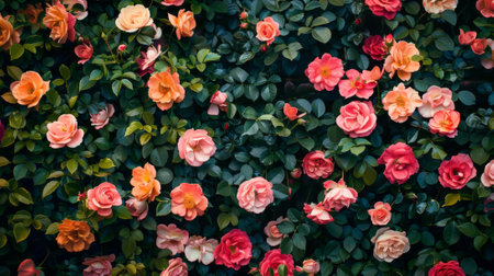A wall of flowers with many different colors and shapes, AI