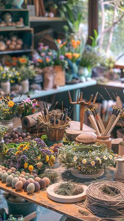 Easter Craftsmanship - Wreath Making, Egg Decoration, and Spring Crafts at Busy Table.