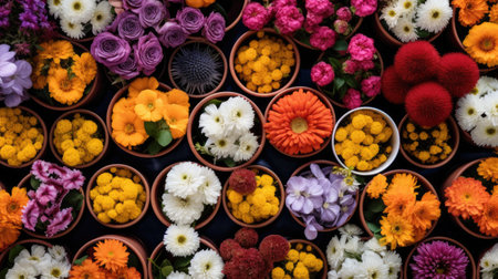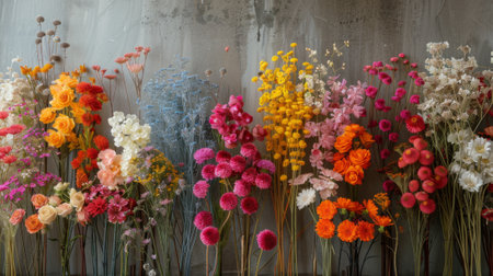 A stunning arrangement of vibrant flowers showcasing a variety of colors and textures. Perfect for decoration, events, or as a beautiful backdrop for any occasion.