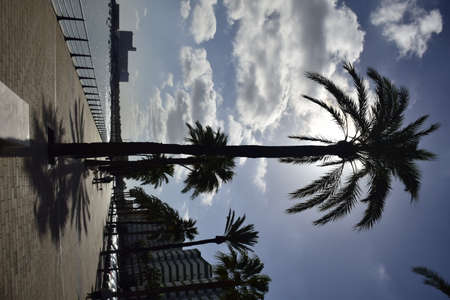 Cadiz, Spain - 06 november 2019:Paved embankment with tall palm trees.