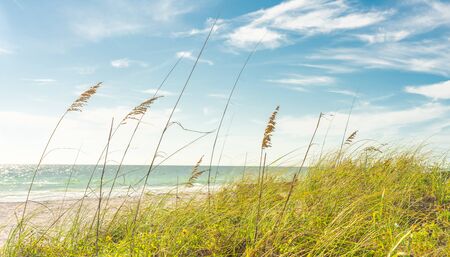 Beautiful Sand Dunes and Sea Oats on the Coastline of Anna Maria Island, Florida