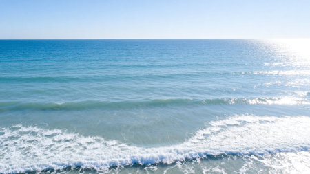 Tranquil ocean wave motion. Summer sea breeze. Sea nature backdrop. Peaceful ocean. Dreamy ocean horizon. Coastal ocean paradise wallpaper. Seafoam waves. Scenic tropical travel.