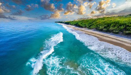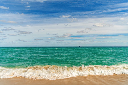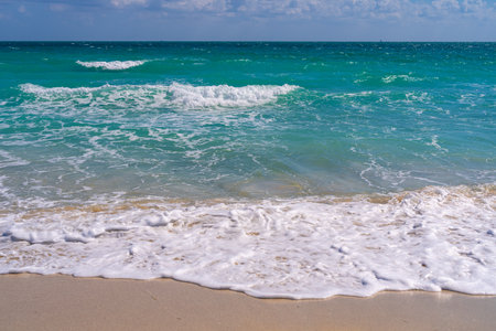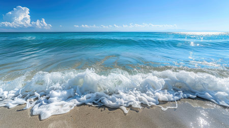 This captivating image of ocean waves gently rolling onto a sandy beach embodies the essence of natural beauty and relaxation, serving as an ideal summer vacation backdrop to inspire calmness