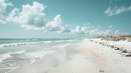 AI Generated. Serene Beach Landscape with Gentle Waves and Blue Sky