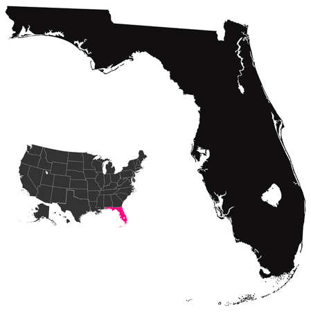 United States with selected Florida map and Florida flag icon. Vector map and flag.