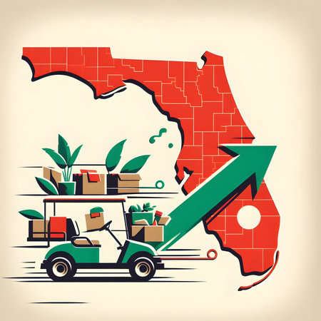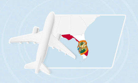 Florida Travel Illustration with Plane and National Flag. Ideal for travel agencies, promotional materials, or geographic content related to Florida.