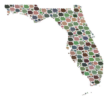 Mosaic map of Florida designed with colored flat concretions. Vector particolored geographic abstraction of map of Florida.