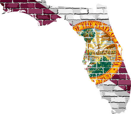 Florida map on a brick wall - Illustration, The state of Florida map with flag inside