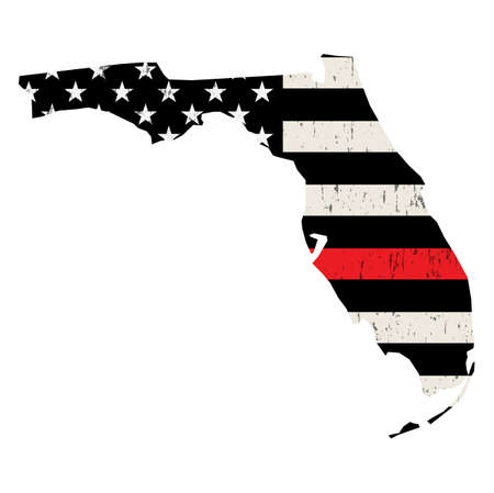 An American flag in the shape of the state of Florida firefighter support illustration.