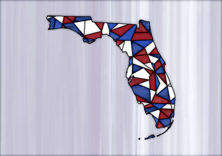 digital illustration with map of the State of Florida in stained glass style, with red, blue and white colors