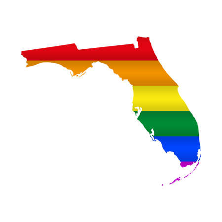 Florida LGBT flag map. Vector illustration. Slightly wavy rainbow gay pride flag map.