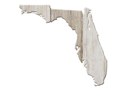Florida map creatively decorated with various objects in different colors and styles over a white surface perfect for educational or artistic concepts.