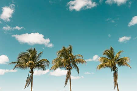Coconut palm trees in Pompano Beach shore on a sunny day