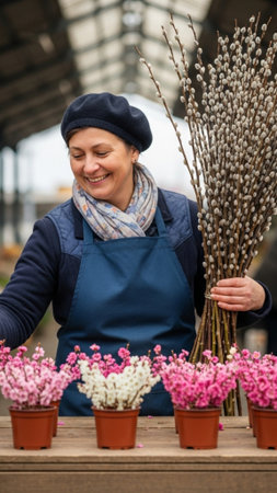 A DIY enthusiast happily arranging colorful flowers and greenery to create stunning floral arrangements for special events