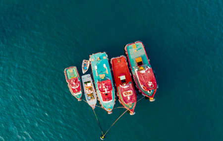 Aerial view on the harbor with boats and yachts. Beautiful composition with sea transport