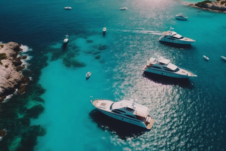 Aerial view of luxury yachts and boats in beautiful bay, Generative AI