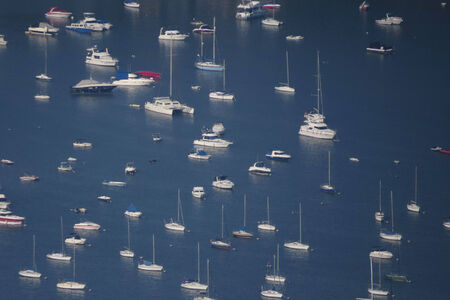Aerial view of the many anchored boats off the coast. Las Teresitas, Tenerife, Canaries, Spain