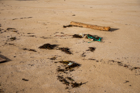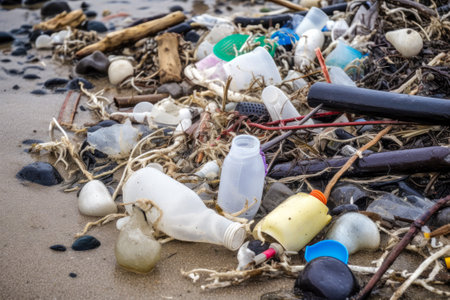 Plastic pollution. debris discovered on beach during environmental cleanup initiative