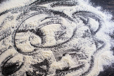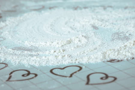 flour shapes kitchen art background concept. creative cooking cuisine process. negative space.