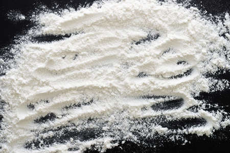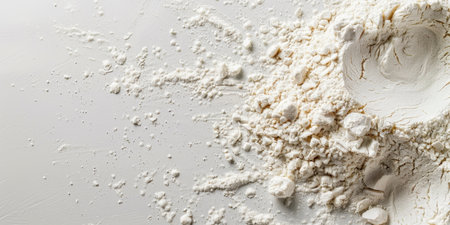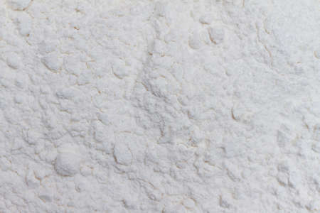 Flour or white powder background. A pile of flour on a white background. Spilled flour, powder cosmetics