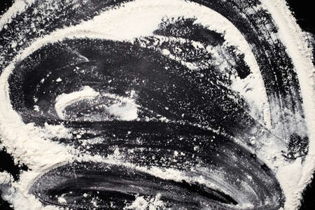 Flour or powder background on black background with whimsical abstract lines and stripes