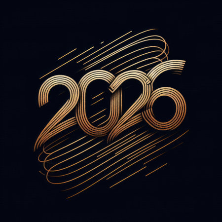 Elegant golden 2026 numbers on white background with abstract lines