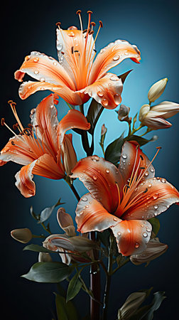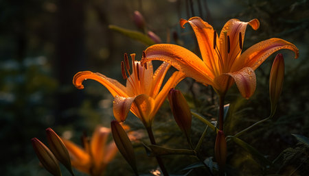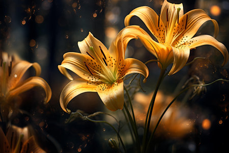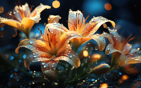 Magical lilies aglow with sparkling twilight, perfect for tranquil and mystical themes