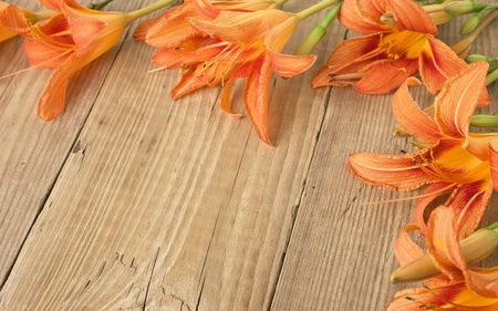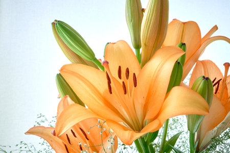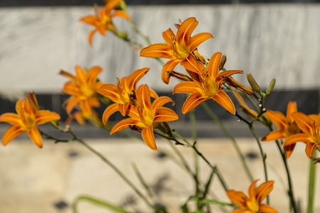 Brightly orange lily flowers. Beautiful flowers with orange petals.