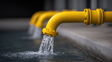 Close-up of factory pipes releasing contaminated water, symbolizing environmental degradation