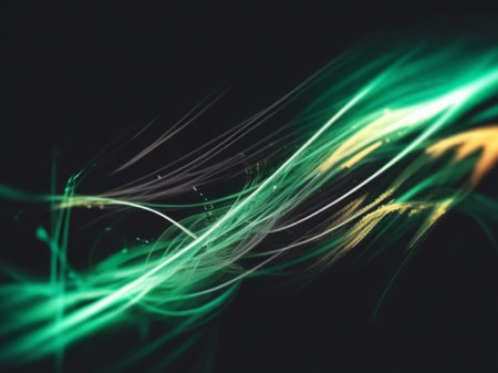 abstract green light lines on dark background, digitally generated image.