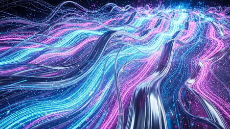 This captivating abstract illustration showcases flowing lights and glowing particles, creating a mesmerizing scene that evokes a sense of movement and energy.