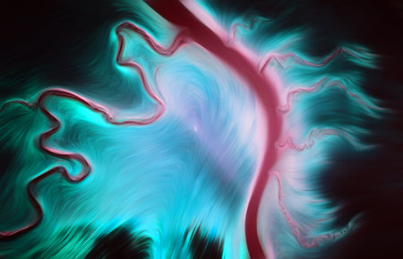 Vivid colors and flowing lines form a captivating abstract design, evoking motion and depth in digital art.