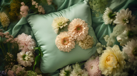 Beautiful and vibrant fresh flowers arranged on a bed for home decoration and relaxation