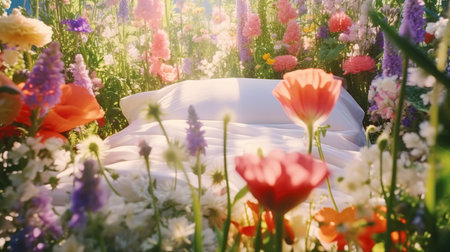 bed in the field relaxation pillow coverlet flowers place dream soft cover photo bedroom air wall art poster cover