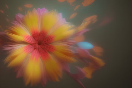 Painting of abstract flower in pastel colors with a soft blur effect.