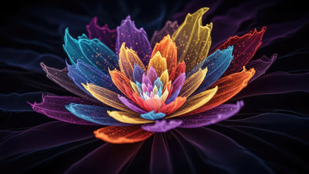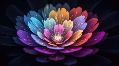 Rainbow flowers, macro photography, illustration