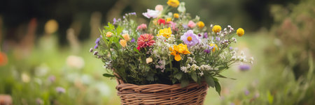 a basket full of flowers in grassy field professional photography