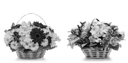 Beautiful flowers in a basket isolated on white