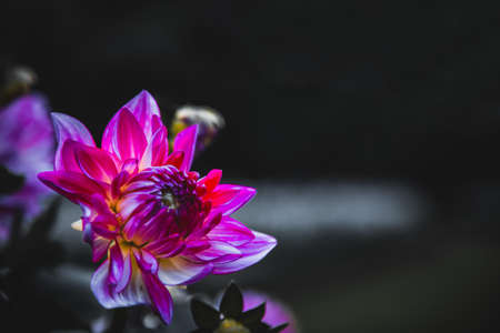 Colorful dahlia flower with water drops on petals close up