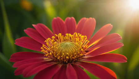 Beautiful yellow and red flower in the garden. Nature background. generative ai